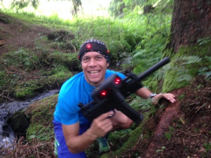 Spielt in den Sommermonaten auf unserer Outdoor-Anlage in Jungholz Lasertag und kommt dabei ordentlich ins schwitzen.